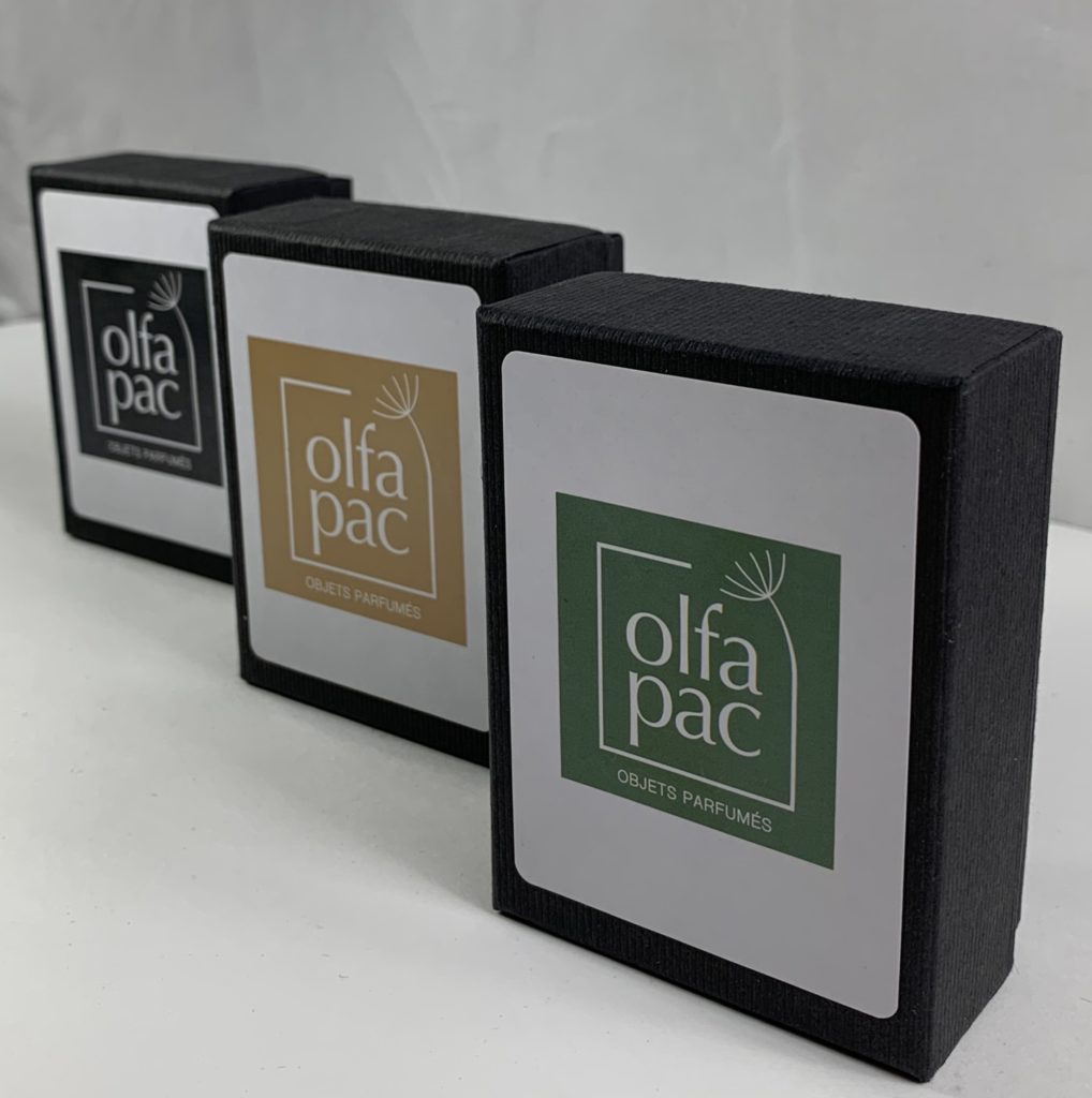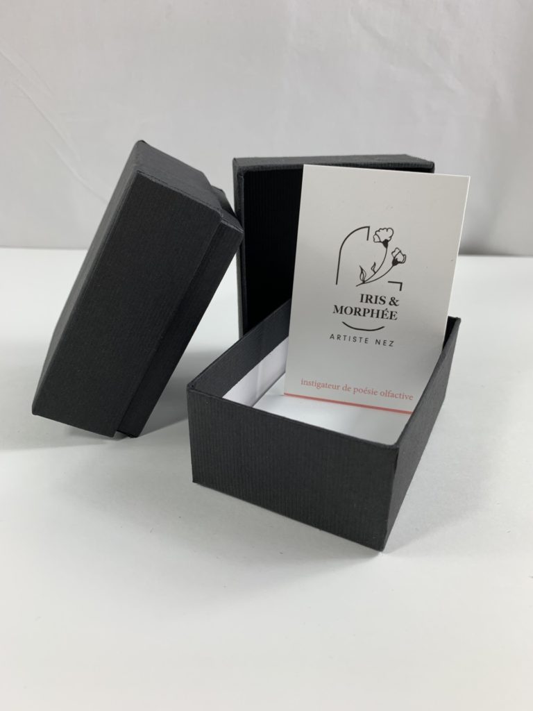 Nous proposons de conditionner vos cartes de visite ainsi que vos cartes échantillons dans une boite conçue pour préserver toutes les fragrances.