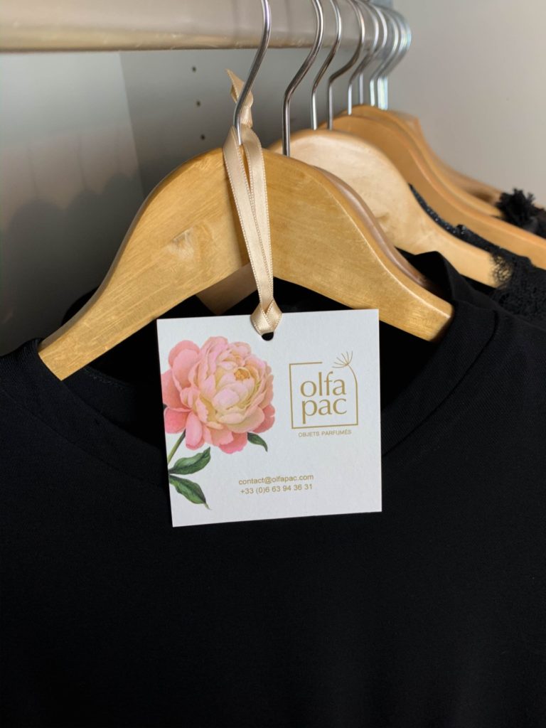 « Accrocher une suspente parfumée à vos porte-manteaux de magasin ou dans un sapin de Noël.
